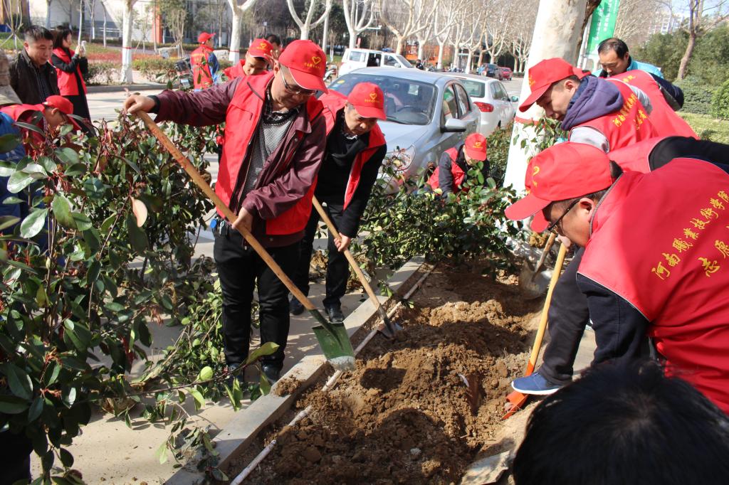为大力弘扬雷锋精神,培育和践行社会主义核心价值观,助力学院省级文明单位创建活动,3月14日下午,后勤管理处志愿服务队组织36名党员志愿者在龙子湖街道办事处文苑社区开展义务植树活动,用心给生活区添上一抹新绿,为居民送上一份惬意。