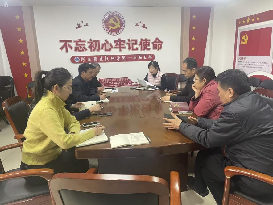 会议传达了学校党委(扩大)会议暨党的建设工作领导小组会议精神,集中学习了《中共河南职业技术学院委员会在全校党员中开展树立和践行正确政绩观学习教育的实施方案》,对后勤领域开展学习教育进行统筹安排、细化落实。