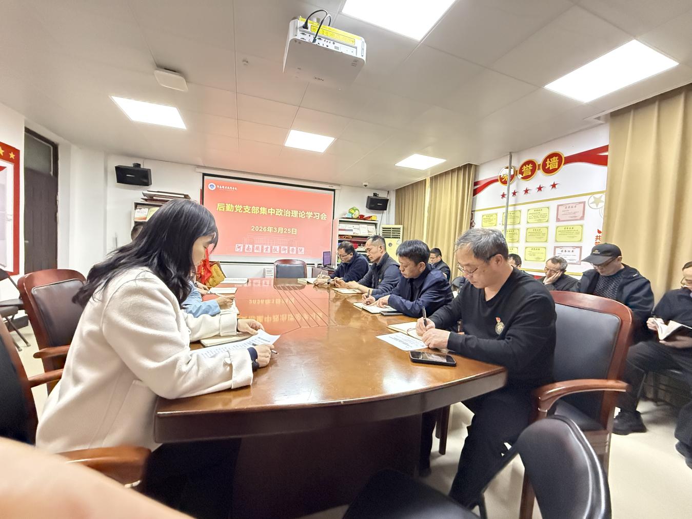 3月25日下午,后勤党支部在后勤楼105会议室召开集体政治理论学习会。支部全体党员参加会议。
